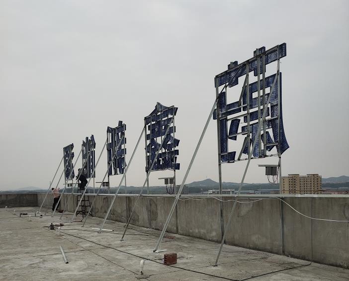 樓頂發光字建議用的材質一:貼膜亞克力發光字;圍邊采用不銹鋼或鋁板烤汽車漆,邊高8-20CM,根據字的大小確定圍邊;LED燈采用進口芯片燈珠,國內一線品牌或國際品牌;亞克力建議采用一線品牌3-5MM厚;透光膜建議采用美國3M、艾利,英國美高,韓國LG等鑄造級高分子透光膜。為什么建議用貼膜而不是直接亞克力板的形式呢?原因有:a.亞克力板本身暴露在戶外一定時間后易發黃、變形、褪色;用透光膜在亞克力表面貼一層后,一是保護了亞克力的表面,二是膜的分子結構不同,在戶外的耐候性更強。b.亞克力板的透光性沒有透光膜強,例如同樣是紅色,在透明的板上貼紅膜和紅色的亞克力板它倆之間打光出來的透光性,顏色飽和度都有很大的區別。c.裝同樣的LED燈情況下,透光膜與亞克力相比,其照度更好。